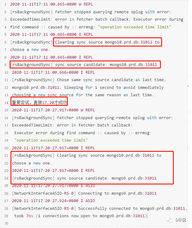 2、备库拉oplog日志一直失败且一直尝试切换数据源